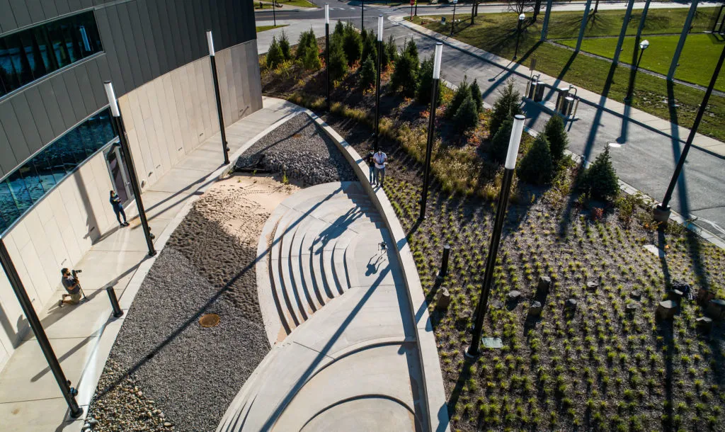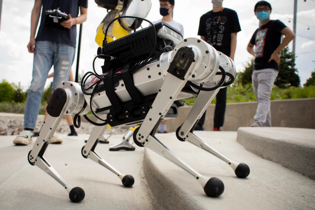A mini-cheetah out on the Robot Garden at the Ford Motor Company Robotics Building. Photo: Levi Hutmacher.